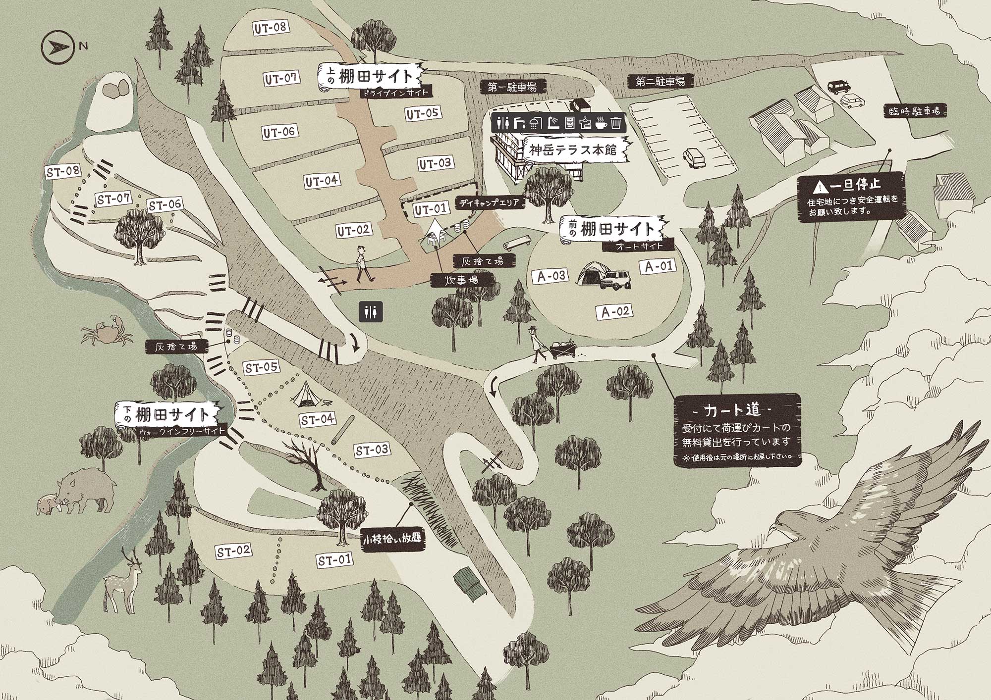 - 前の棚田サイト/上の棚田サイト/下の棚田サイト/デイキャンプエリア